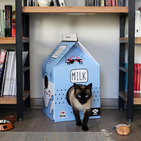 Rascador-casa BRNX Maxi Caja de Leche Azul tiene un diseño moderno, comodidad para tu gato y estilo que se integra a tu hogar. Tamaño 56x32x31 cm.
