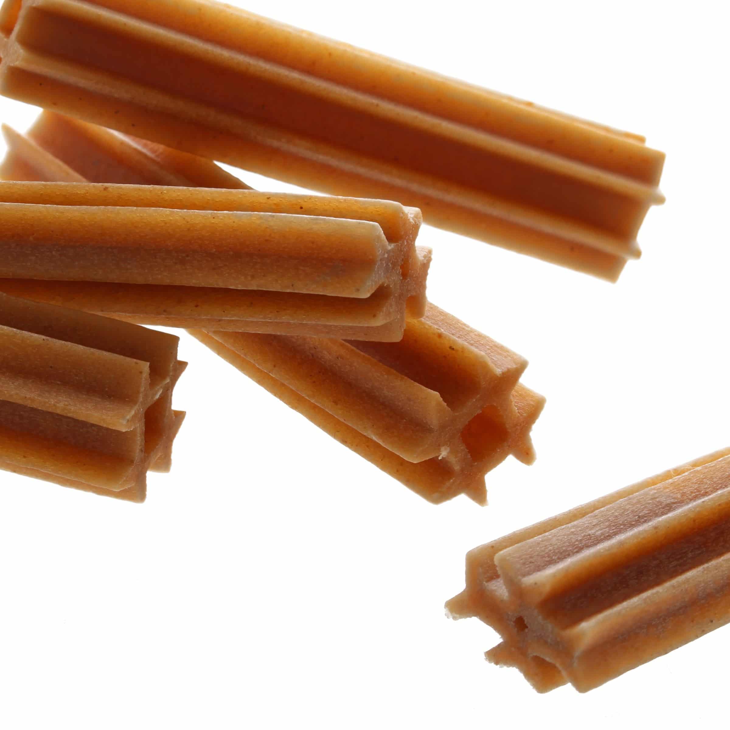 Estos snacks para perro son una excelente fuente de fibra que ayuda a prolongar el nivel de saciedad de tu mascota, contribuyendo a mantener un peso saludable. Además, contribuye al brillo de la piel y pelaje. Recomendado para perros de razas pequeñas y medianas.