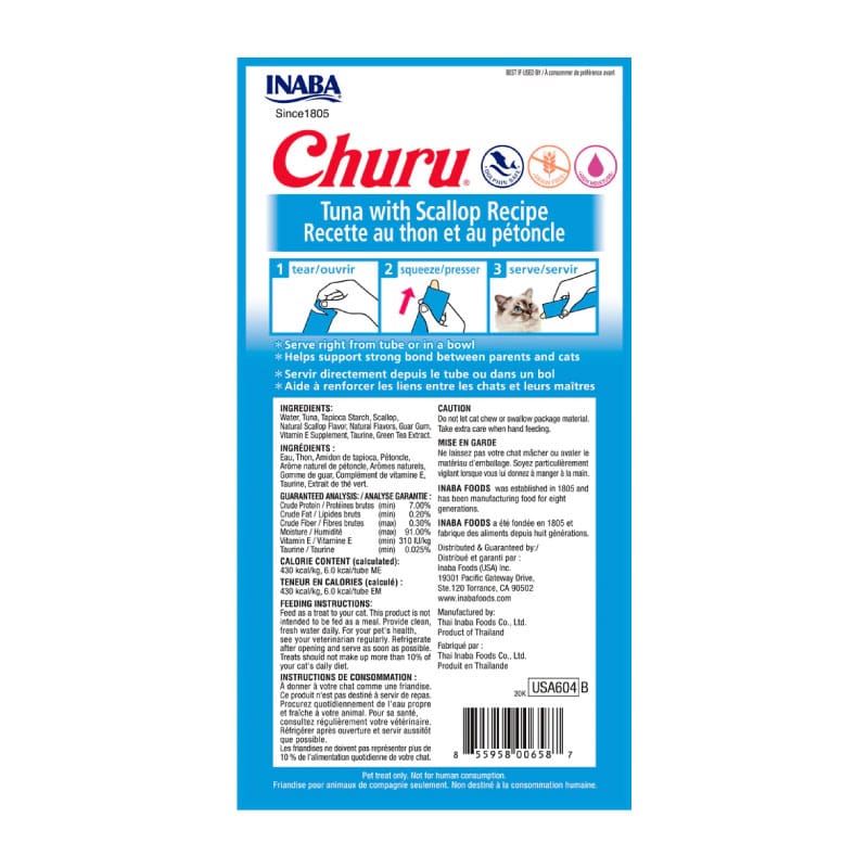 Inaba Churu Gato Sabor Atún y Ostion 4 Tubos