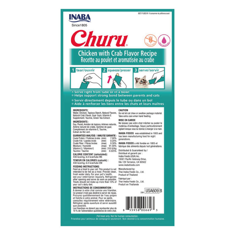 Inaba Churu Gato Sabor Pollo y Cangrejo 4 Tubos