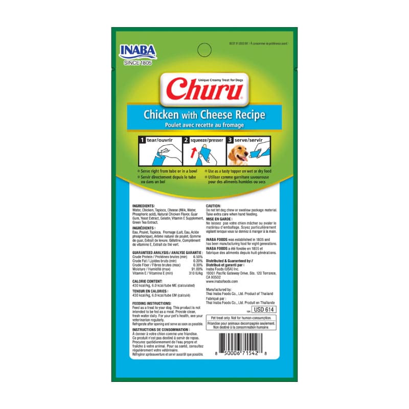 Inaba Churu Perro Sabor Pollo y Queso 4 Tubos