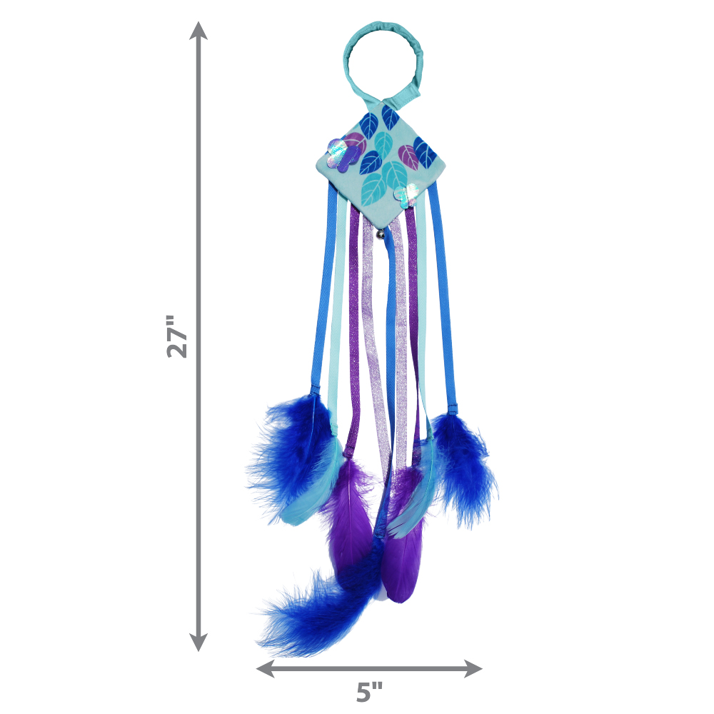 Juguete para gatos con plumas ondulantes, sonidos de cascabel y tela reluciente. Se cuelga fácilmente y se adapta a cualquier lugar para un juego multisensorial prolongado.