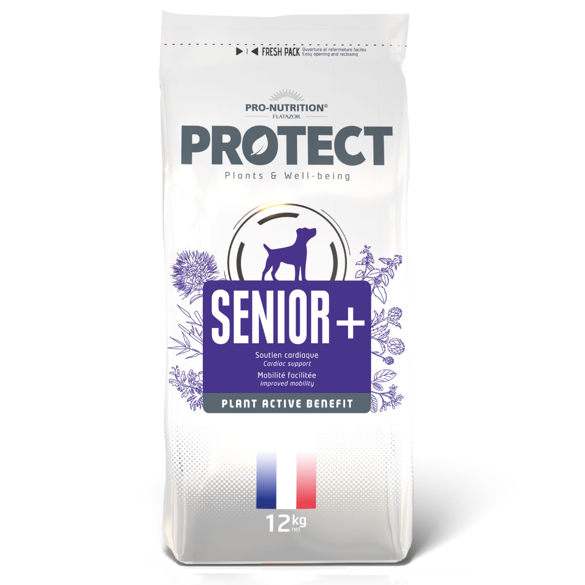Protect Senior + es un alimento completo dietetico para perros senior que ayuda a la funcion cardiaca en caso de insuficiencia cardiaca cronica. Tambien indicado para la recuperacion nutricional y/o convalecencia o para el mantenimiento de la funcion dermica en caso de dermatosis y perdida excesiva de pelo.