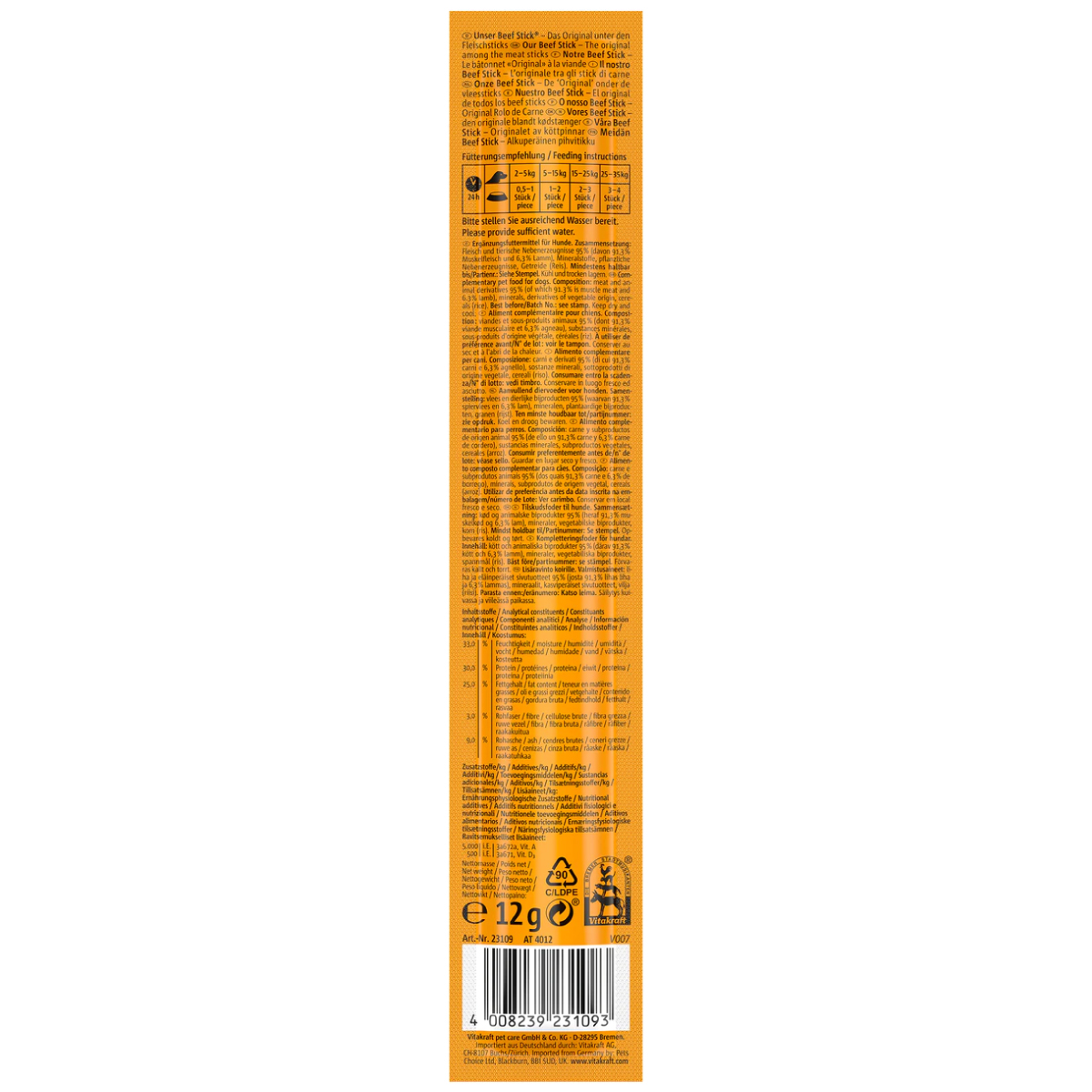 Vitakraft Beef-Sticks es un alimento complementario para perros. Alimente a su perro un stick, ya sea entero o en trozos más pequeños, como una golosina entre comidas o como recompensa.